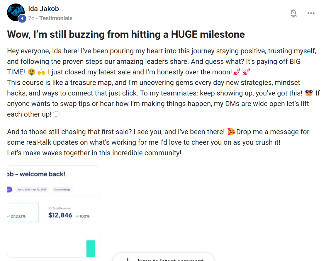 This course actually comes with its own community of 20,000+ people where you can ask questions & network. In addition to that, if you get the course with me, you will be added into my PRIVATE CHANNEL youll receive my personal phone number & an optional group chat with weekly calls! I want to see you become a success story!