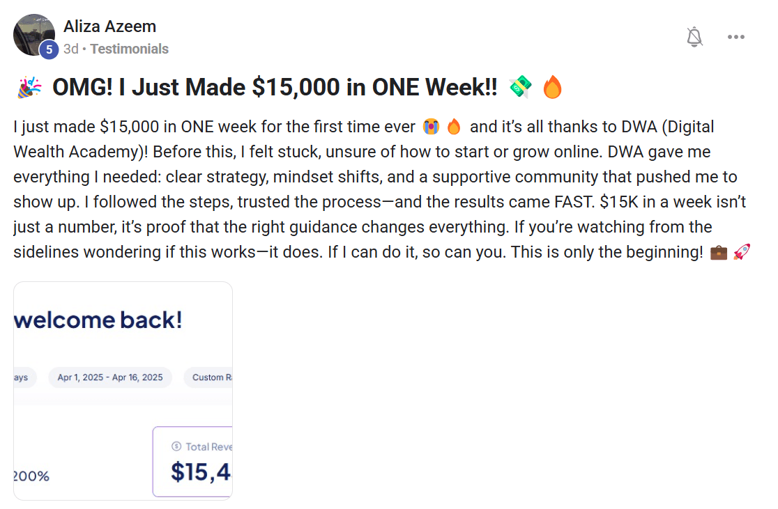 Learn how to promote The DWA course or any other product. This will teach you how to quickly grow your audience and make sales via social media marketing.